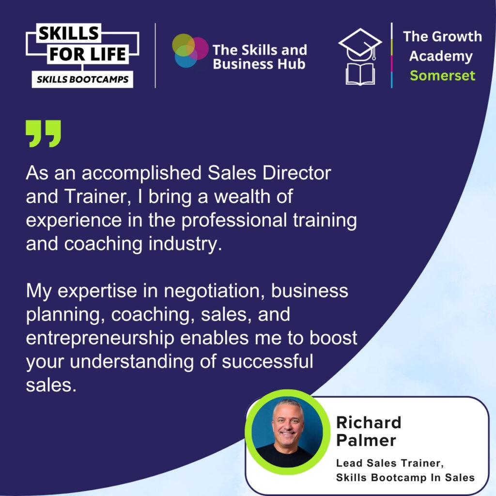 The programme is led by Sales Director and trainer Richard Palmer from The Growth Academy Somerset, who has over thirty three years of experience in sales, business development and coaching. The course covers core sales skills, negotiation, communication, business development, account management and the use of technology and artificial intelligence to generate and convert leads. Sessions are built around coaching and real life situations, helping participants apply what they learn directly to their own business or role.